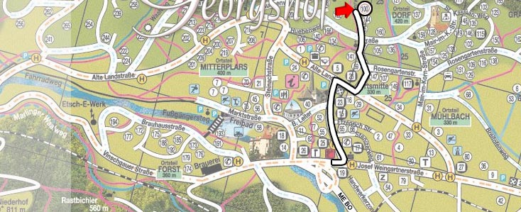 • At the traffic light turn left into the Thalguter-street and go